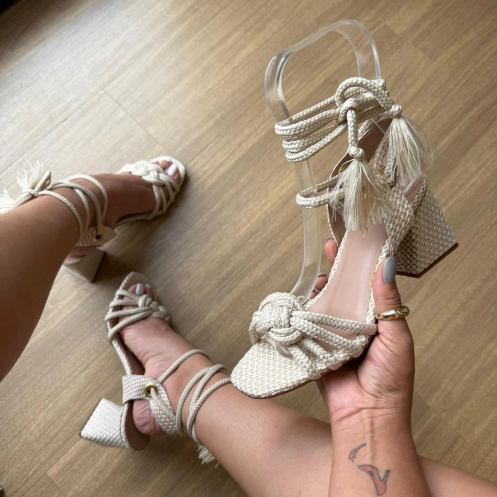A escolha certa para quem ama um visual urbano com toque sofisticado. Com amarração em corda e design diferenciado, a Sandália Samantha combina modernidade e elegância em cada detalhe. Seu salto de 8cm oferece conforto e postura impecável, ideal para acompanhar o ritmo da cidade com estilo.