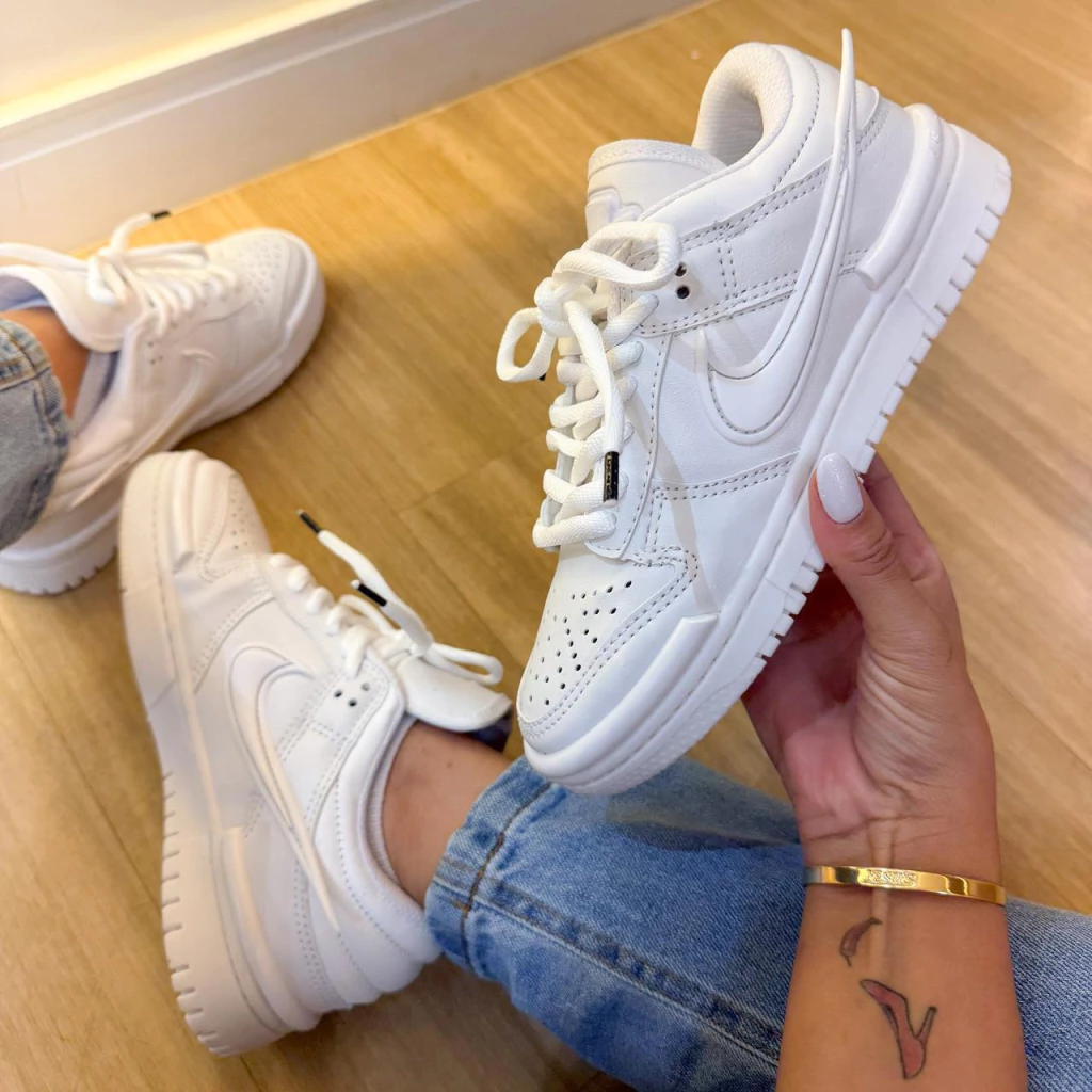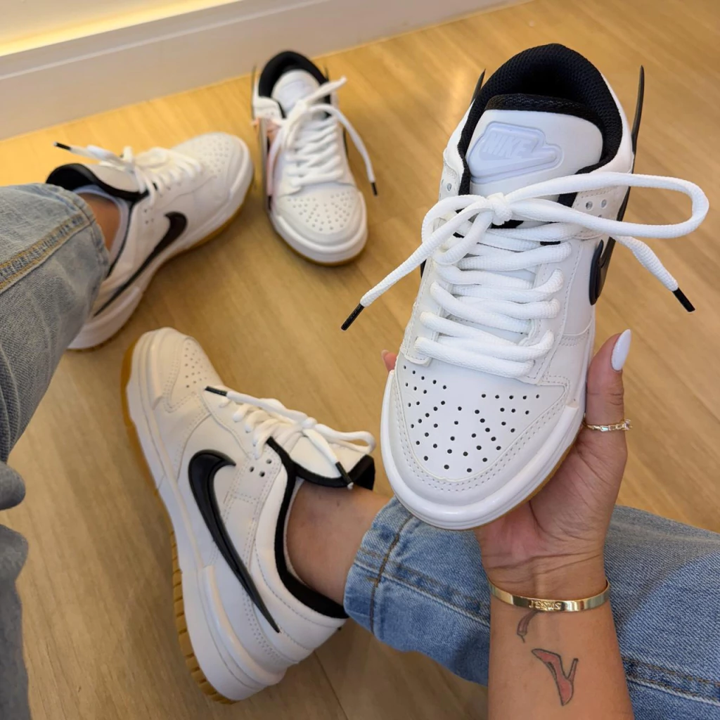 Adorei esses tênis Nike brancos com detalhes em preto — super confortáveis, estilosos e combinam com tudo. Já saíram da caixa direto pro pé! 👟🤍🖤